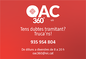 El servei d’OAC 360º s’ofereix de dilluns a divendres, de 8 del matí a 8 del vespre, trucant al 93 595 48 04 o escrivint a oac360@vic.cat.