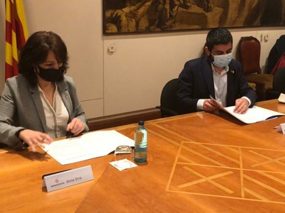 L'alcaldessa Anna Erra i el conseller Chakir el Homrani signen un protocol de col·laboració per ubicar a Vic la futura seu del Departament a la Catalunya Central
