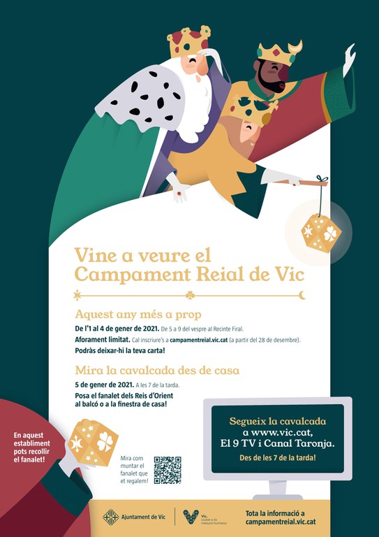 A Vic s’ha reajustat la cavalcada per seguir amb les mesures anunciades pel Procicat i es garanteix que passi el que passi cap nen ni nena es quedi sense veure la cavalcada. Castells ha expressat que la cavalcada es podrà seguir només per www.vic.cat, El 9 TV i Canal Taronja en una retransmissió màgica que afavorirà el seguiment i el compliment de totes les mesures sanitàries. “Els Reis d’Orient ens han dit que qui no miri la tele no podrà veure com arriben a Vic i que ho fan per garantir que la pandèmia pugui acabar el més aviat possible”, ha afegit Albert Castells.