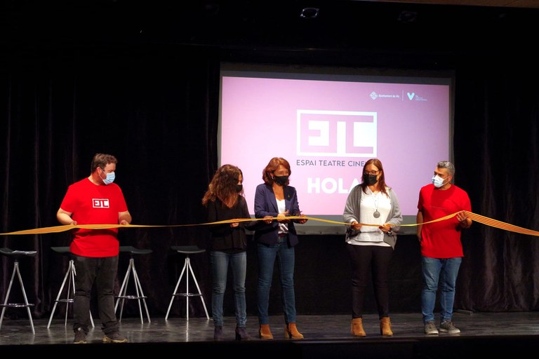 El nou Espai ETC va reobrir les portes ahir al vespre en un acte inaugural presidit per l’alcaldessa Anna Erra, la regidora de Cultura Susagna Roura, la presidenta de l’Associació de Veïns i Veïnes del Remei Iolanda Garrote, el president del Cineclub Vic Sergi Calle i el president d’Etcètera Teatre Jordi Colom.
